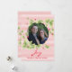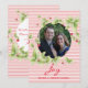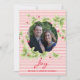 Stylish, flat Christmas greeting card done in a pale red and white horizontal stripe pattern, with a round cutout for your photograph. Graphics of pretty light green vines with red berries, decorate around the picture area. Personalise the red text, at the bottom of the card, and add your own photograph. Matching products are available.