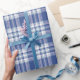 Festive Stylish Light Blue & White Plaid Pattern Wrapping Paper