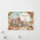 Welcome the New Year 2026 with a festive italian atmosphere. This greeting card features the phrase "happy new year 2026" written in elegant red cursive font. The background showcases a detailed illustration of St. Peter's Basilica in Vatican City, set against a picturesque cityscape. In the foreground, a beautifully arranged table displays candles, a cake, wine glasses, and floral arrangements, creating a celebratory ambiance. The card is adorned with colorful flowers and fruits, enhancing the joyful and festive theme.. YOU CAN CHANGE THE TITLE.