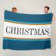 Festive Teal Blue White Brown CHRISTMAS Stripes Fleece Blanket