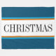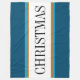 This colourful holiday design features a wide white horizontal centre stripe outlined in blue and brown pinstripes between teal outer stripes. The optional CHRISTMAS text, if used, can be personalised.