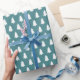 Festive Teal Blue White Christmas Tree pattern Wrapping Paper