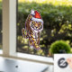 Cute Christmas Tiger is all decked out for the holidays wearing a festive red Santa hat. Deck your windows with this cute animal art stick and you'll be sure to bring smiles. Collect all our festive animals and have a Christmas Animal Parade. Happy holidays!