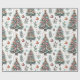 Delightful wrapping paper showcases beautifully decorated Christmas trees adorned with ornaments, berries, and leaves, creating a joyful holiday atmosphere perfect for gift-giving.