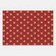 Festive Trendy Christmas Red & Gold Daisy Wrapping Paper Sheet