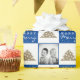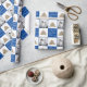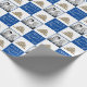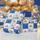 Festive Blue and White Typography Christmas Tree Family Photo Wrapping Paper. Blue and white background with snowflakes and a simple Christmas tree. White Merry, Happy, Jolly typography. Personalise the design with your photo - insert it into the template and make your own personal wrapping paper.