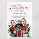 Festive Watercolor Teapot house illustration Christmas Tea Party Invitation.