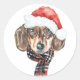 Festive Watercolor Dachshund Santa Christmas Classic Round Sticker