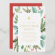 Invite family and friends to your Christmas celebration with this customisable gold foil Christmas party invitation. It features watercolor illustrations of holly, pine needles and eucalyptus leaves and evergreens. Personalise by event, names, date, time, address and other details. Matching items are available. This festive greenery Christmas party invitation is available on other cardstock.
