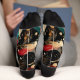 Embrace the festive spirit of winter with these artistic socks, showcasing a harmonious mix of teal, gold, and crimson strokes on a sleek black background. Featuring intricate abstract patterns, this design brings a touch of elegance and warmth to seasonal outfits. Perfect for art lovers and winter fashion enthusiasts, these socks add a creative flair to cold-weather wardrobes.