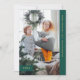 These colourful and modern cards feature a forest green bar along the side of your personal photo, and a small matching banner with the year adds additional style. The gold coloured text says "Merry Christmas", and you can add your family name.