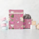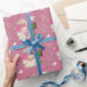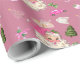 Brightly coloured wrapping paper adorned with whimsical holiday motifs like Santa, gifts, trees, and ornaments, perfect for adding festive cheer to any gift during the Christmas season.