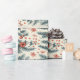 Decked in vibrant reds and green, this festive wrapping paper features intricate pine branches and blossoms, perfect for adding charm to holiday gifts during the joyous season.