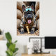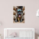 He’s not playing—he’s deployed. Corporal Kibble crouches low behind a sandbag wall, decked out in full desert camo with kneepads, a tactical vest, and night-vision goggles perched on his head. In his paw? A rubber bone, held with deadly seriousness. His vest says “FETCH 6,” and his walkie is live with barking commands. His tongue may hang out, but this pup’s ready for action. Perfect for military fans and funny dog art collectors.