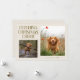 Minimal and modern holiday photo template card featuring 2 photos of your pup on the front with a text that says "Fetching Christmas Cheer." You can also add another picture and message on the back. The background is cream.