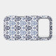 Decorative damask surface pattern design in dark and mid-blue blue detail on a pale cream color background.