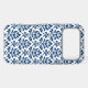 Decorative damask surface pattern design in dark blue detail on a white background.