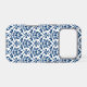 Decorative damask surface pattern design in dark blue detail on a white background.