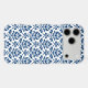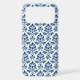 Decorative damask surface pattern design in dark blue detail on a white background.