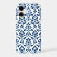 Feuille Damask Pattern Dark Blue on White iPhone Case