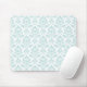 Feuille Damask Pattern Light Teal on White Mouse Mat