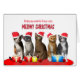 A funny and cute Christmas card with 5 cats sitting in a row wearing Santa hats. The words Meowy Christmas are above the cats.Any cat lover will love this! A Christmas card for your fiance.