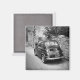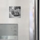 Photo magnet with a vintage old small FIAT 500 car in a street in a city in Italy in stylish black and white.