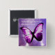 A fibromyalgia awareness square pin with a beautiful purple butterfly an the inspirational words: "Fibromyalgia can't keep my light from shining through"