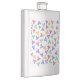 The product is a good size and came exactly as it was pictured.  The lid is not attached to the flask, which could be dangerous on drunken nights... The print came out surprisingly well and looks very sharp.  Would definitely recommend.