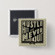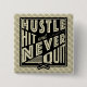 Text reads: Hustle, Hit And Never Quit, with a crossed field hockey sticks icon.