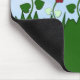 Sweet flowers with heart-shaped petals in pink, red and rainbow colours stand in a bright green field against a blue sky filled with fluffy clouds on this cute, floral mousepad. From my original digitally-created image.