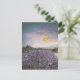 Field of Lavender Flowers, Blue Sky, Pink Sunset, Postcard