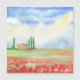 Field of poppies in Tuscany. The watercolor illustration was drawn and scanned. Watercolor Landscape made in the open air 2024. The image will be both a good gift and a wonderful interior decor.