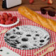 Paper plates in a Digital print based on a photograph of sunflowers - black and white with soft shades of grey / grey