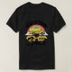 I give wanted to give this a 4 instead of a 5 because these Basic DARK T0shirts run unexpectedly SLIM or Narrow. Which is great if you do not have a potbelly, but I have a paunch. It isn't the shirt's fault that I've got a beer belly. The design and shirt itself is a quality cotton shirt. The color is more of a deep purple, but still a very pretty color. The Basic DARK T-shirts run a bit SLIMMER than the Basic Ts. The neck is a fraction narrower (or seems to be narrower) also. I'm a paunchy middle-aged woman and my neck is 12 inches (31cm) thick and the neckline fell about the same as in the photo of the man, and I had the desire to tug it a bit. So if you're a thick necked man or like loose shirts, be aware these are slimmer shirts. Once I get rid of my lockdown paunch it'll look great. The shirt washed well in cold water with no apparent bleeding. We don't have a dryer, so it hung dry. Did not shrink. Love the colors and the design. The design looks smaller on my shirt than it does on the model on-line. But still, it looks good on the shirt. The printing looks as it does on the model, just the size seems fractionally smaller. Washed garment in cold water, hung dry and design appeared unaffected.