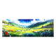 "Fielddale" Wide Landscape Yorkshire Dales Scene. A peaceful Yorkshire Dales scene unfolds in this stylised watercolour, with undulating hills and fields bordered by stone walls. Colourful meadow flowers enhance the tranquil, relaxed atmosphere, reflecting the charm of this English rural idyll.