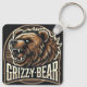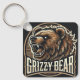 Fierce Grizzly Bear Illustration Key Ring