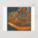 This postcard features a powerful and dynamic illustration inspired by traditional Japanese woodblock print aesthetics.