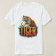 Striking t-shirt design showcasing the word “TIGER” in bold lettering, complemented by a vivid illustration of a tiger that embodies strength and power, all set against a dramatic dark background.