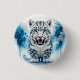 A vivid artwork featuring a roaring white leopard centred amidst a dynamic blue splatter design, emphasising strength, wilderness, and creative flair.