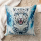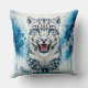 A vivid artwork featuring a roaring white leopard centred amidst a dynamic blue splatter design, emphasising strength, wilderness, and creative flair.