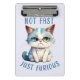 Show off your love for cats and witty humour with this adorable yet feisty clipboard featuring a sassy angry cat and a humourous phrase. Perfect for cat lovers, fans of playful wordplay, and anyone who adores bold feline charm, this design is a fun way to express your fiery spirit. A great gift for cat enthusiasts and pet lovers alike!