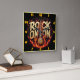A striking guitar emerges from flames, surrounded by bold lettering that encourages a spirited rock attitude, evoking energy and passion for music.