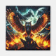 This captivating design features a majestic owl soaring against a dramatic moonlit sky. The owl, depicted in rich shades of brown and gold, symbolises wisdom and power. Below, vibrant flames in fiery oranges and reds represent transformation and renewal. The dark blues and blacks of the night sky contrast beautifully with the bright white full moon, adding depth and mystery to the scene. This artwork is a powerful representation of resilience and rebirth, making it a striking addition to any collection.