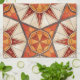 This seamless geometric pattern kitchen towel features a radiant starburst medallion design in warm shades of red, orange, amber, and cream. The intricate shapes and fine line details evoke the look of handcrafted mosaic or stained glass artistry. Inspired by Mediterranean tilework and sun-inspired geometry, the design combines bold colour energy with balanced symmetry, creating a sense of warmth, creativity, and timeless craftsmanship. Ideal for lovers of artistic patterns, geometric design, and vivid, earthy tones.