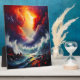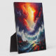 Fiery Sky and Roaring Sea tabletop plaque with easel art print is a captivating AI-generated seascape that brings together the raw power of nature and the vivid beauty of a dramatic sky. This masterpiece captures an explosive contrast between stormy waves crashing against the shore and a vibrant, fiery sky that lights up the heavens in radiant red, orange, and golden hues. The scene evokes intense emotions, blending both chaos and tranquillity in a powerful and visually striking composition. The dynamic play of light and shadow, combined with the turbulent energy of the ocean, creates a sense of awe and wonder, making this artwork perfect for those who love to immerse themselves in the majesty of nature. This piece stands out due to its dramatic colour palette and dynamic movement, making it an ideal addition to any living room, office, or bedroom. Whether as a statement piece or an inspirational gift for adventure seekers and ocean lovers, Fiery Sky and Roaring Sea makes a bold artistic impression. Perfect for occasions such as housewarmings, birthdays, or as an eye-catching centerpiece in nautical-themed spaces. This work of art, produced by AI, merges modern creativity with nature's timeless beauty to offer a unique addition to your wall decor.