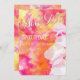 Bright fiery magenta, pink, yellow and gold watercolor strokes that say Bright Summer Tropical Sunset, accented with a white floral Hollyhock overlay.