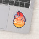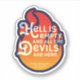 Sticker featuring the quote from William Shakespeare’s The Tempest “Hell is empty, and all the devils are here” against an orange fire on a blue background.