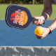 Literary Pickleball Paddle featuring the quote from William Shakespeare’s The Tempest “Hell is empty, and all the devils are here” against an orange fire on a blue background