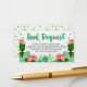 Looking for a fiesta, cactus or taco themed book request or books for baby insert for your baby shower invitation? This colourful design features some cacti and red flowers on a white background. The heading is in a faux watercolor wash in green and is part of the image and can't be altered. This fiesta, cactus or taco themed book request or book for baby insert is ready to be edited. Same design baby shower invitation and thank you card are also available at the store.